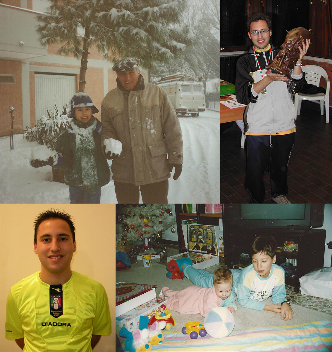 ...era un bimbo buono che non voleva andare all’asilo, ma stare sempre insieme ai suoi nonni, quando mamma e papà lavoravano. In particolare era attaccato a suo nonno Gastone che lo portava sempre a divertirsi. Nel 1991 nasce anche il fratellino Maurizio. Crescendo si avvicinò a molte passioni come l’astronomia, l’arbitraggio, i numeri e i giochi, fino a che un bel giorno incontrò Gaia…